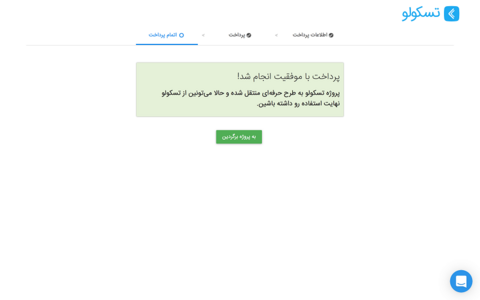 بعد از انجام پرداخت، وارد صفحه زیر میشین که نشون میده پرداختتون موفقیتآمیز بوده.