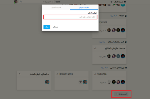 سازمان بزرگترین تقسیمبندی داخل تسکولو است که داخلش میتونین بینهایت پروژه ایجاد کنین.