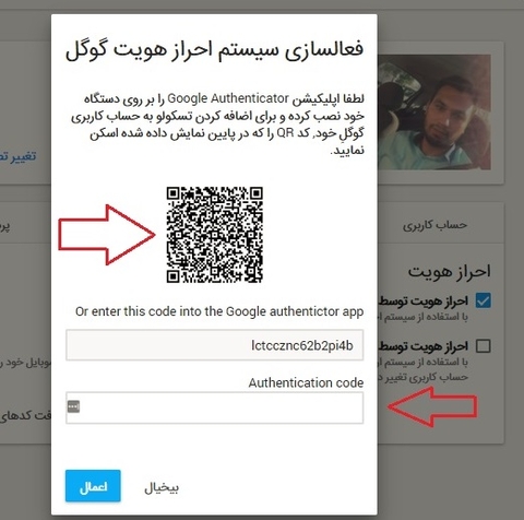 برای استفاده از این قسمت احتیاجه که شما برنامه "Google Authenticator " را در گوشی خود نصب کنین.