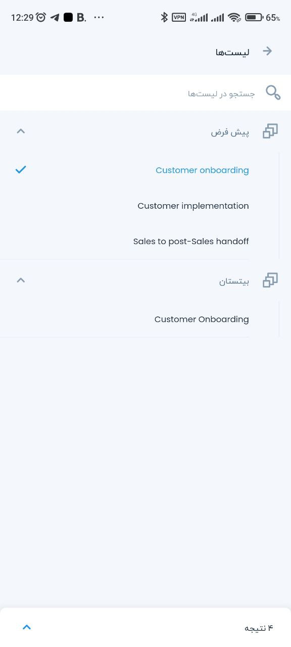 جستجو بر اساس لیستی که کار درش قرار داره: می‌تونید انتخاب کنید که زمان‌های کاری کارهای موجود در یک لیست مشخص رو مشاهده کنید.