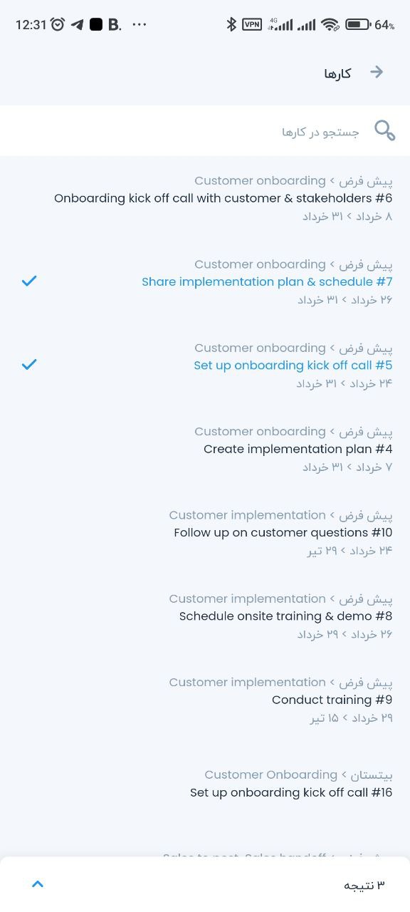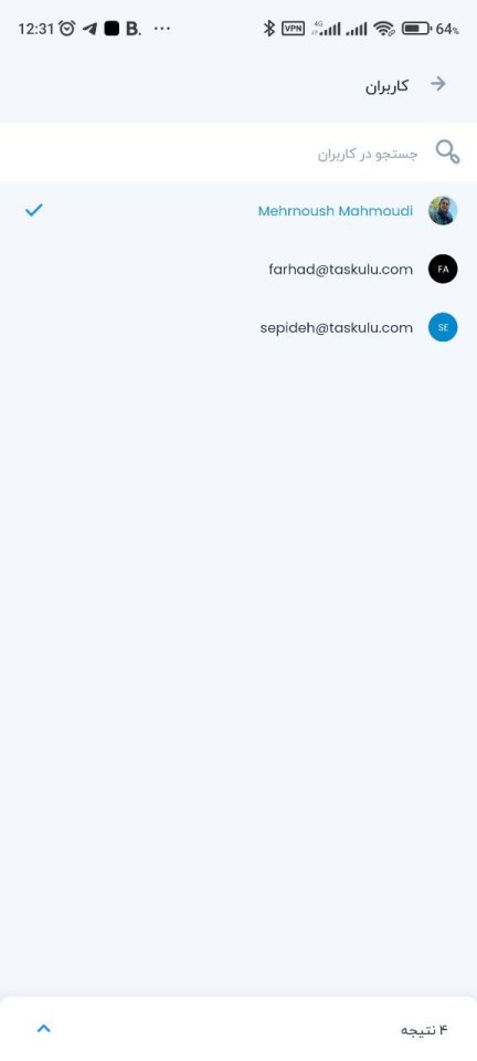جستجو بر اساس کار محول شده: با انتخاب هر کدوم از کاربران می‌تونید کارهای محول شده به اون رو مشاهده کنید.